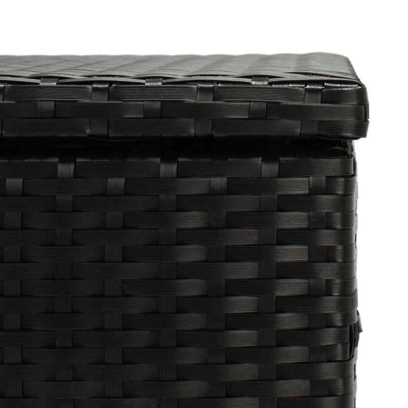Enhance your outdoor space with this stylish and functional deck box. Crafted from durable wicker and plastic, it offers ample storage for cushions and accessories. The sleek black design complements any decor, while the wheels provide easy mobility. Perfect for organizing and protecting your outdoor essentials.