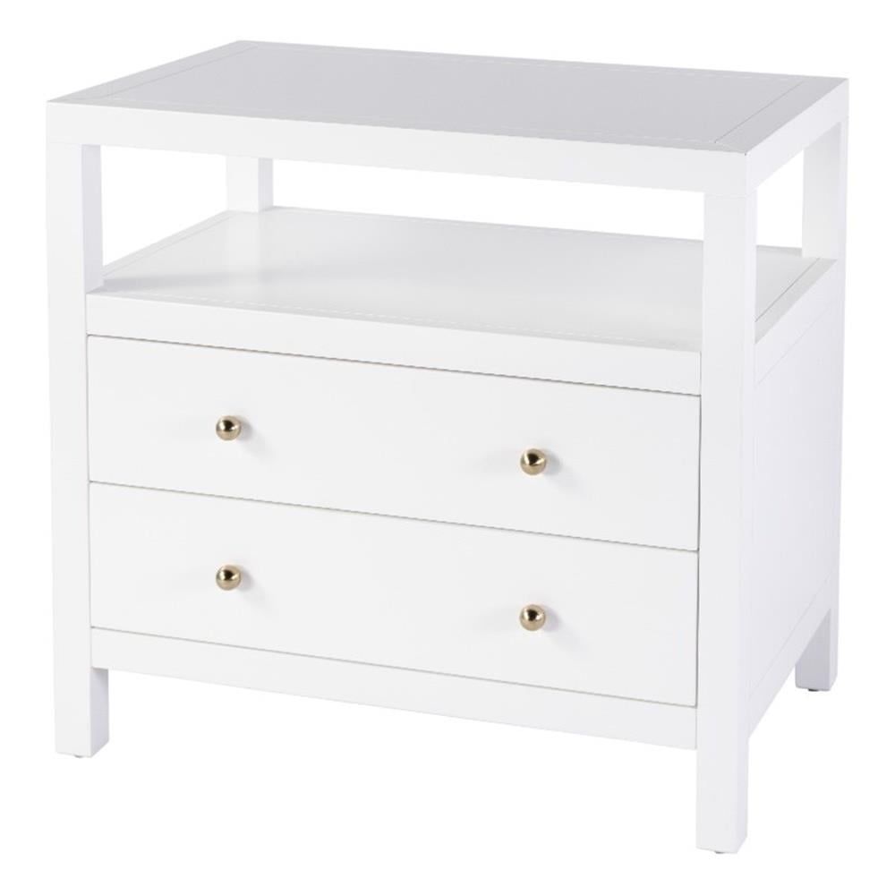 Smooth White Acacia Wood 2-Drawer Nightstand with Gold Knobs - Smooth White