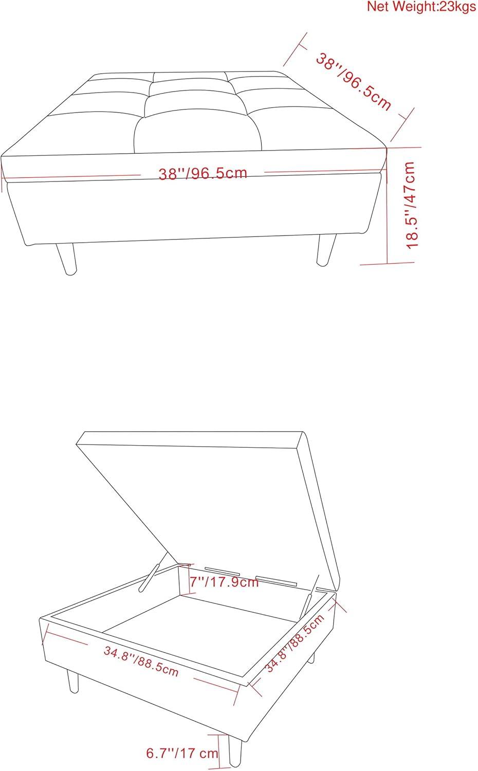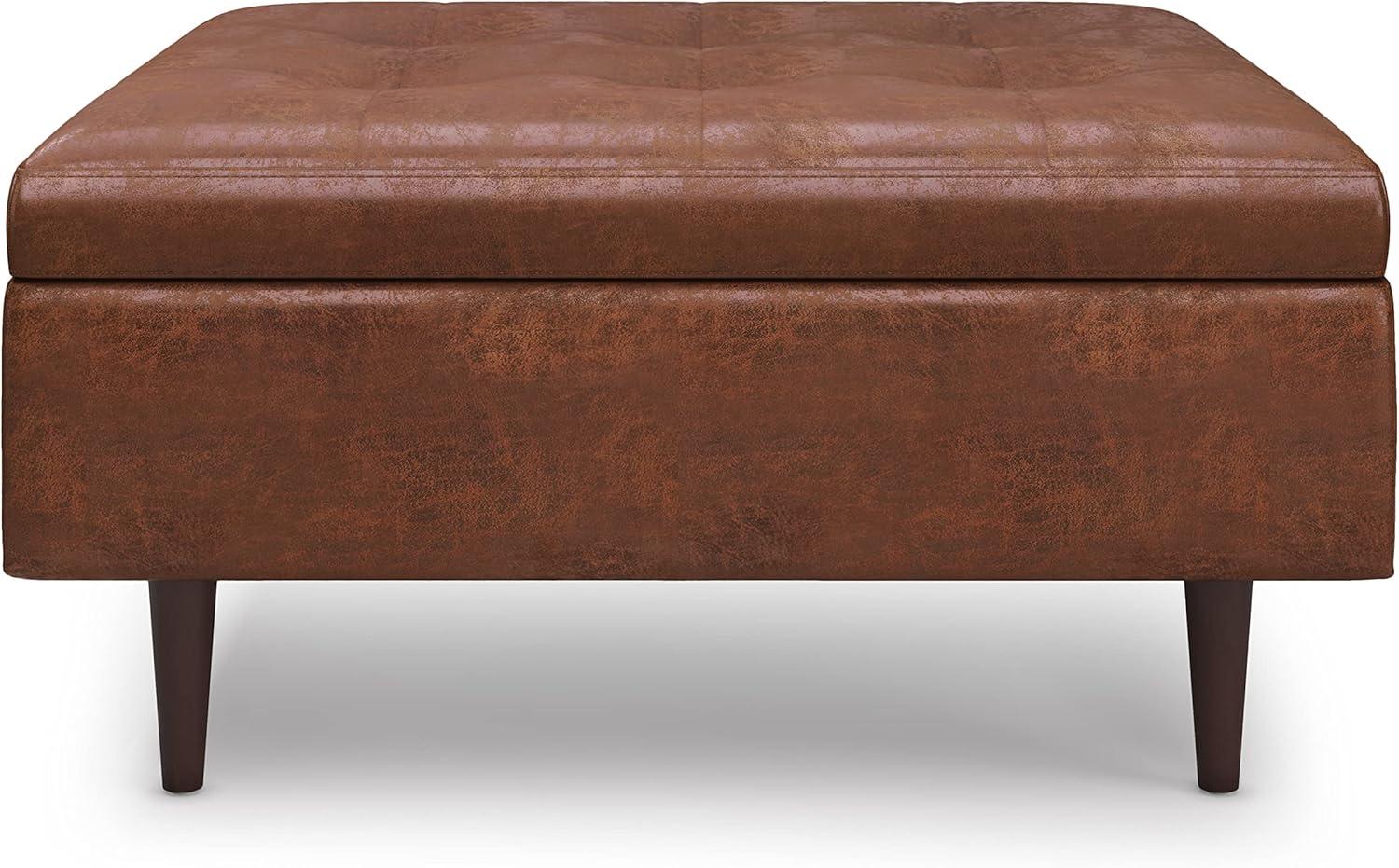 Simpli Home Shay 38"W Upholstered Square Coffee Table Storage Ottoman with Lift Top and Tufted Detail