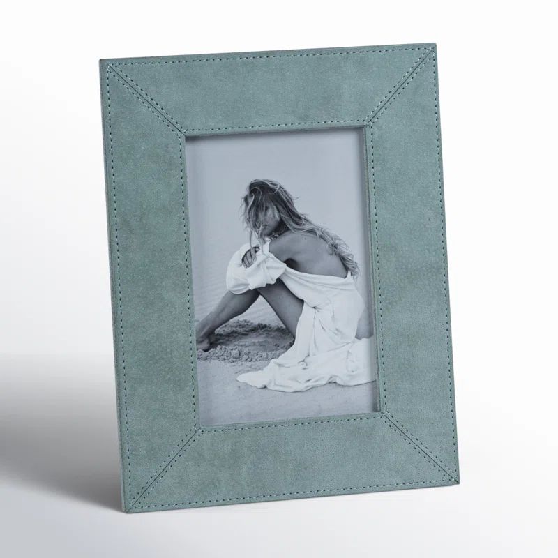 Add a romantic touch to your tabletop with this elegant picture frame. The luxurious suede leather finish and shoreline gray color enhance its traditional appeal. Perfect for showcasing your cherished memories, this frame is designed to grab attention and complement any decor.
