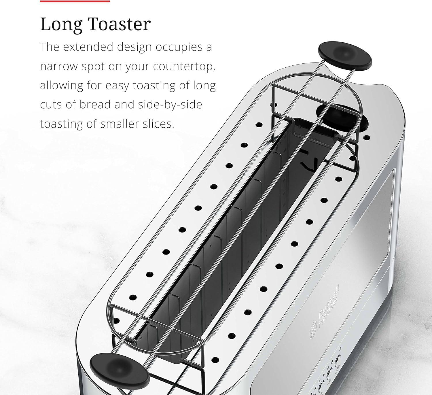 Russell Hobbs TRL9300GYR 2-Slice Glass Accent Long Toaster, Silver & Stainless Steel