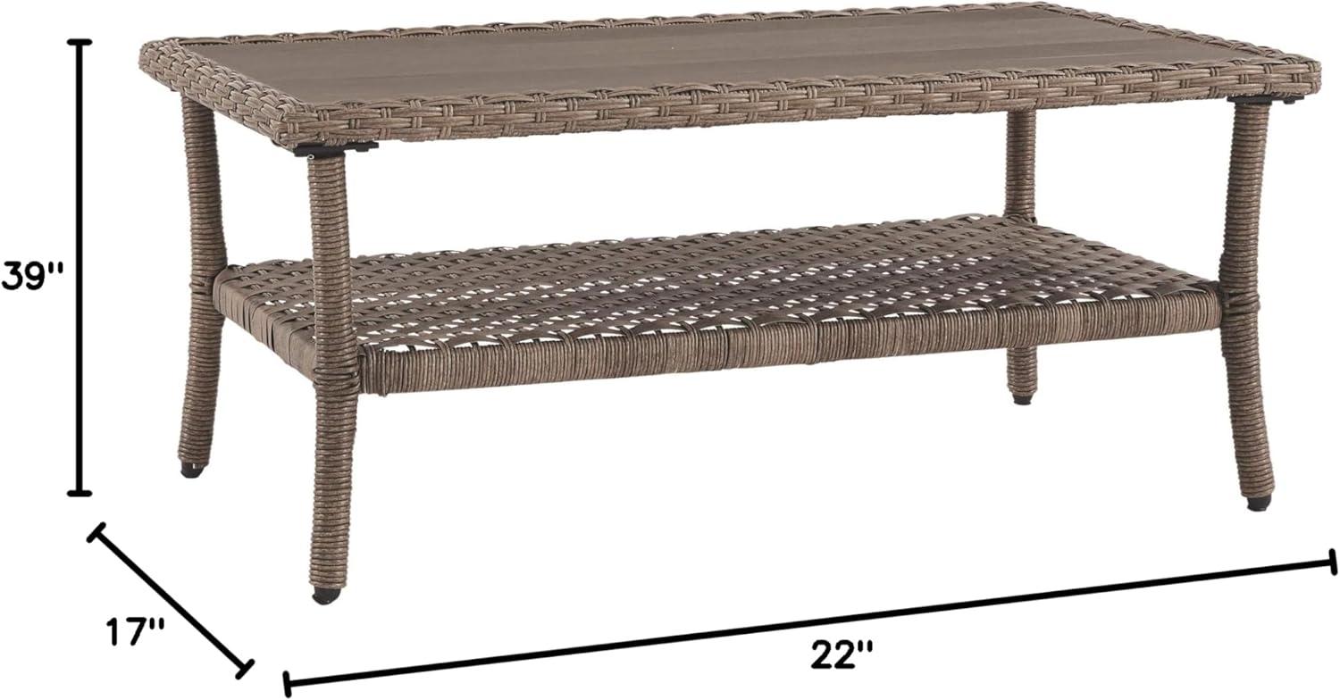 ,Signature Design by Ashley Clear Ridge Outdoor Wicker Coffee Table with Rust Free Aluminum Base, Light Brown at Amazon
