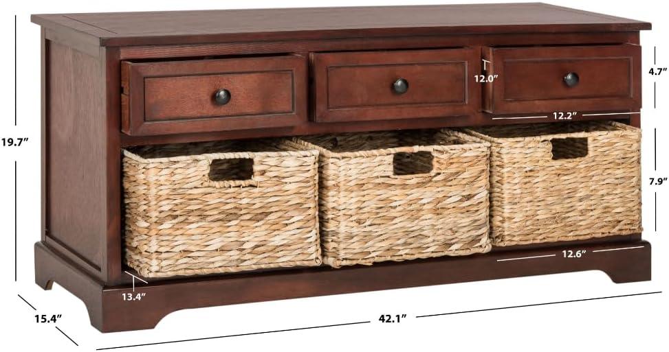Transitional Damien Dark Cherry Pine Storage Bench with Wicker Baskets - Dark Cherry - dark cherry