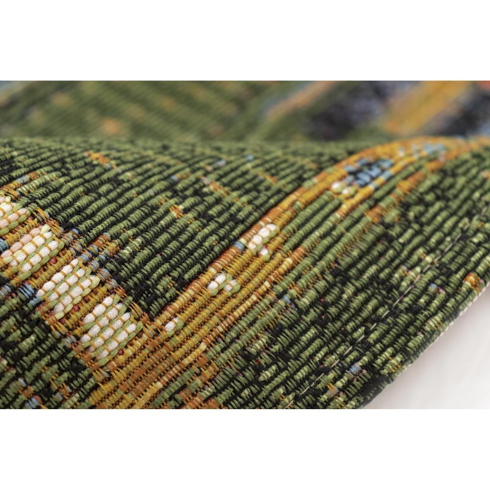 Elevate your space with this versatile indoor/outdoor rug, featuring a vibrant tribal stripe design in green. Crafted for durability and easy care, its synthetic weave withstands high traffic areas and is UV stabilized to resist fading. Perfect for adding a pop of color and pattern to any setting.