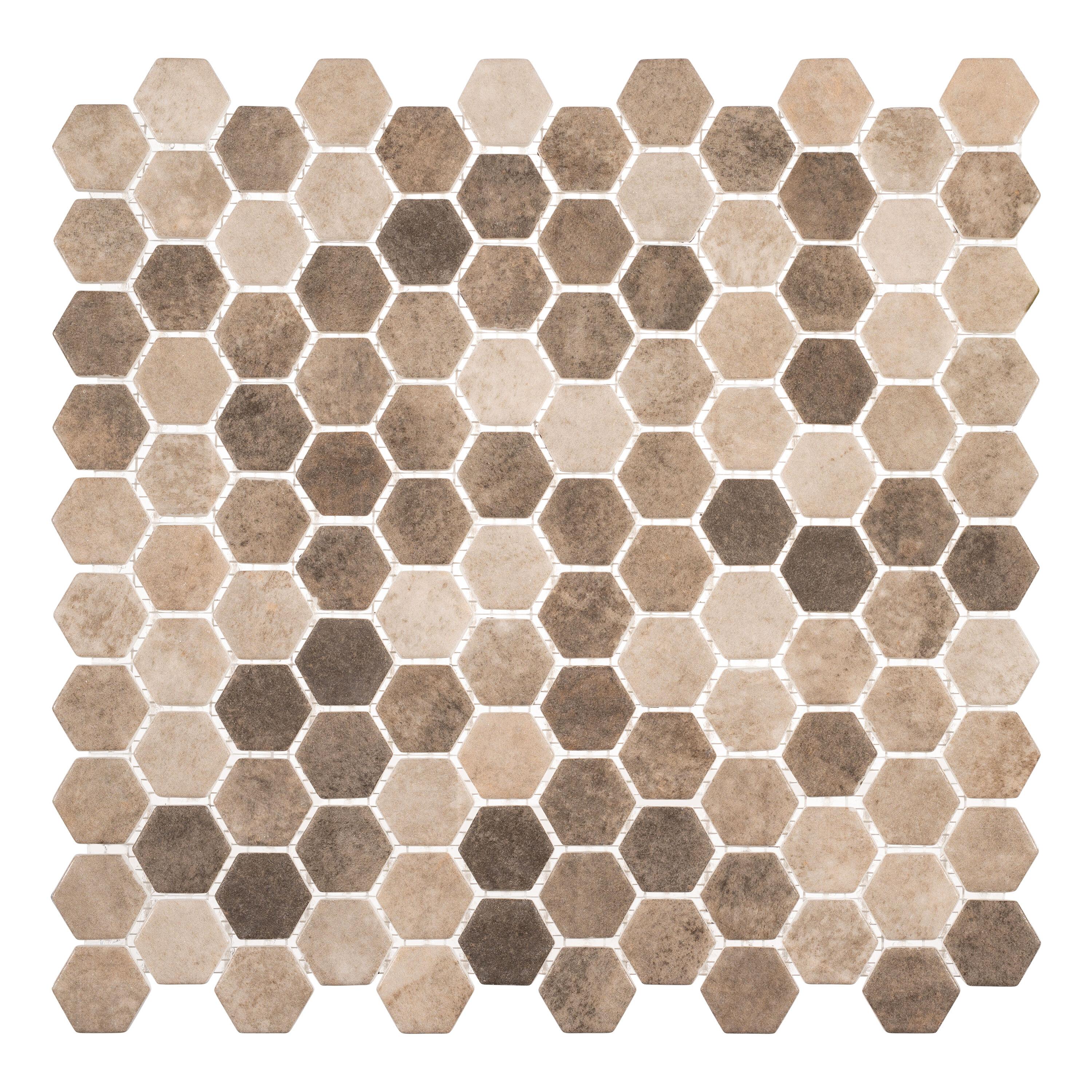 Trillion Hexagonal Matte Glass Mosaic Tile in Oatmeal and Brown - Oatmeal