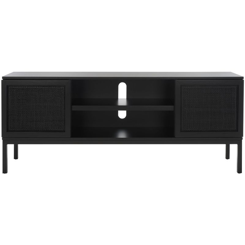 Zadie Black Rattan Media Stand with Cabinet - black - Wood - Black